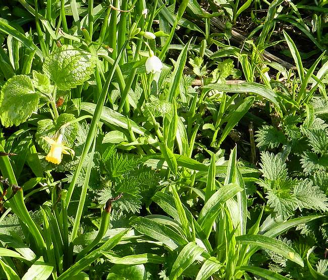 Tussen het speenkruid dat alweer bezig is met de aftocht, de laatste narcis (op deze plek), de gele dovenetel die *bijna* bloeit.