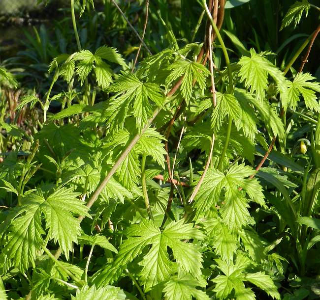 Waarvan ik erg geniet in de tuin is de uitschietende hop.