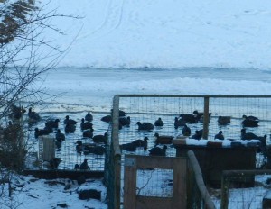 dat de 100+ meerkoeten weg gaan, terug de polder in