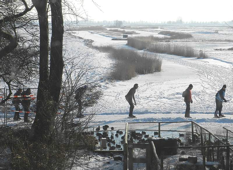 Dat is ook mooi als je naar links kijkt (de polder in) maar omdat je ook moet opletten waar je de schaatsen zet en of degene die vlak voor je schaatst niet opeens inhoudt, moet je daar toch mee oppassen.