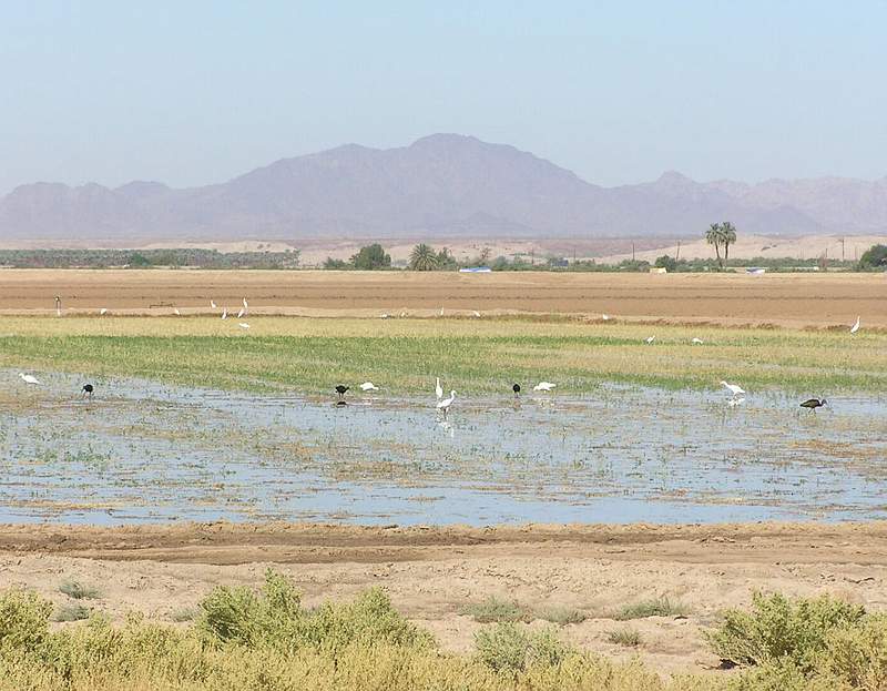 Koereigers en ibissen bij Yuma, AZ