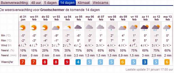 Overigens is de weervoorspelling weer bijgesteld.