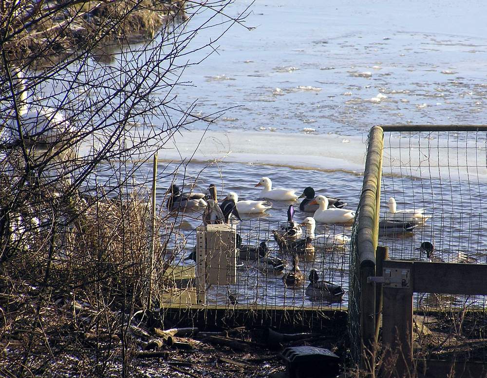 Bij het wak verdringen eenden zich op de steiger wanneer ik kom voeren.