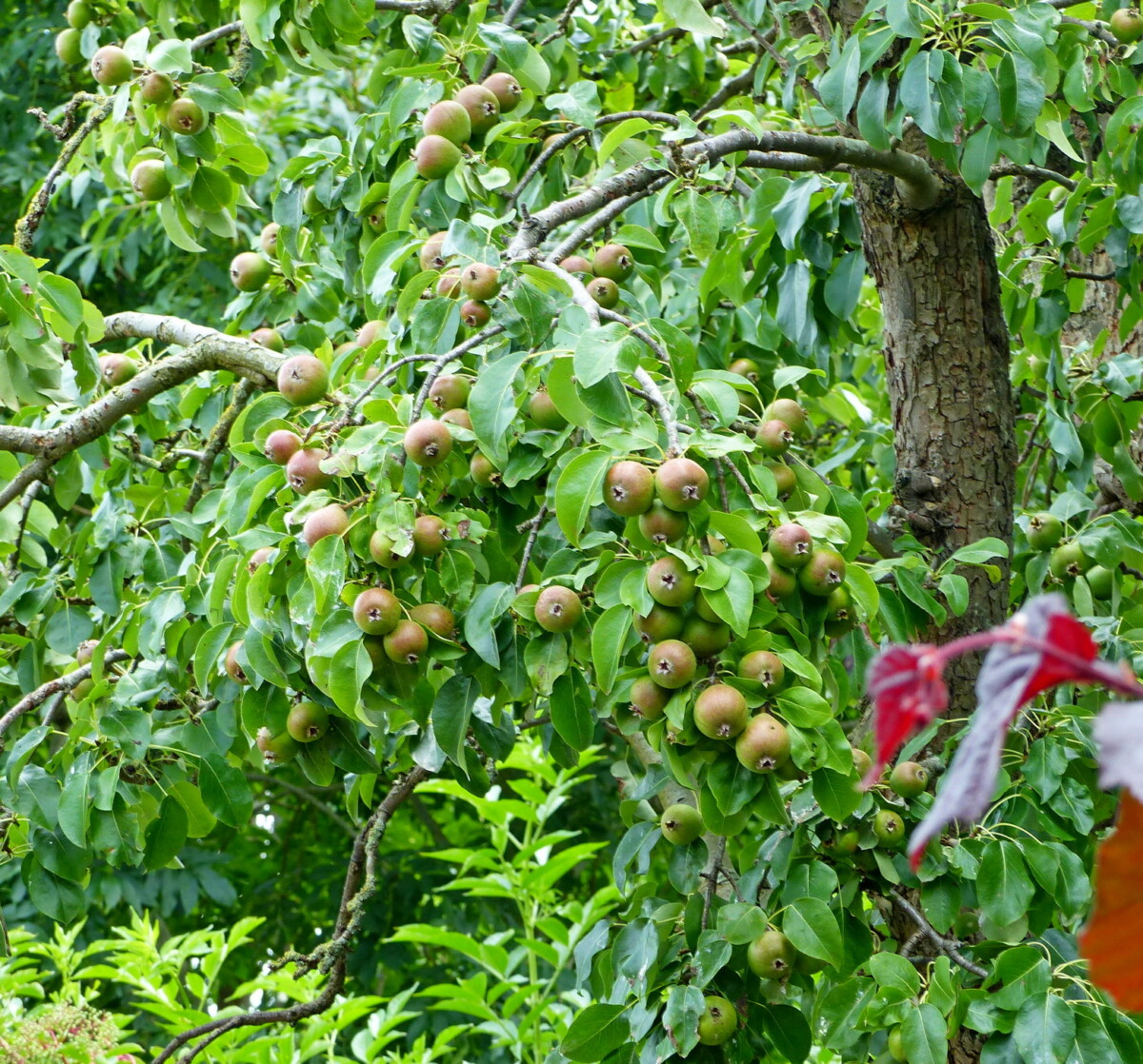 Dat had ik er idd nog aan toe kunnen voegen: de meeste peren halen de fase ‘rijp’ niet eens en belanden aangevreten op de grond.