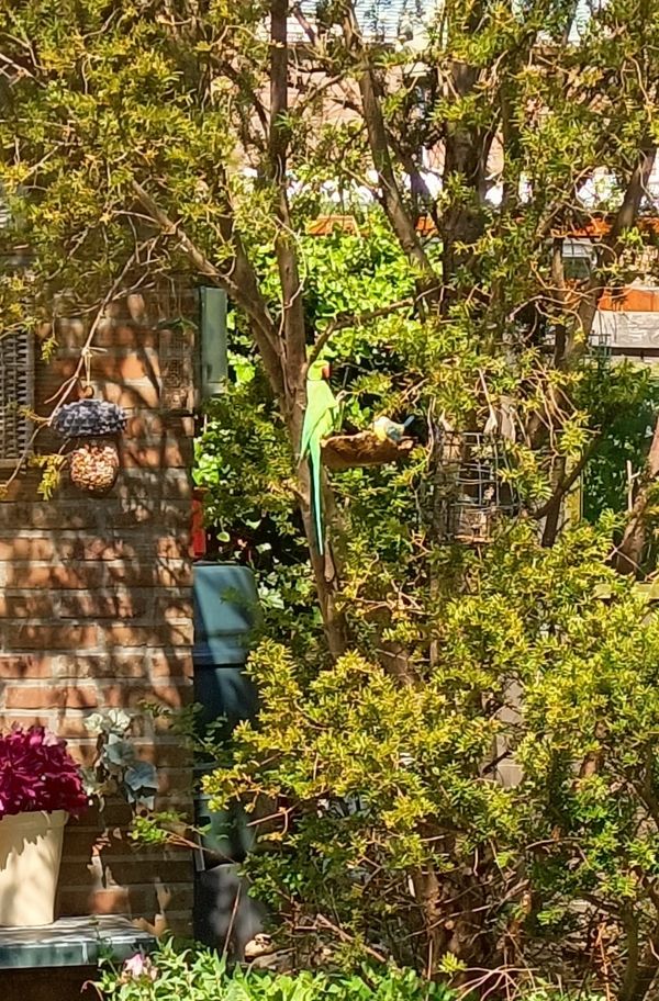 Wat schattig!Nadat we onze laatste 2 poezen in hebben moeten laten slapen,wat uiteraard heel verdrietig was,genieten we nu van de vogelinvasie in de tuin.Jammer genoeg nog maar 2 keer een merel gezien (en gehoord),maar er komen halsbandparkieten,heel veel mussen,kauwtjes,mezen,eksters,een klein bonte specht en zowaar een buizerd..wat doet die in een stadstuin??