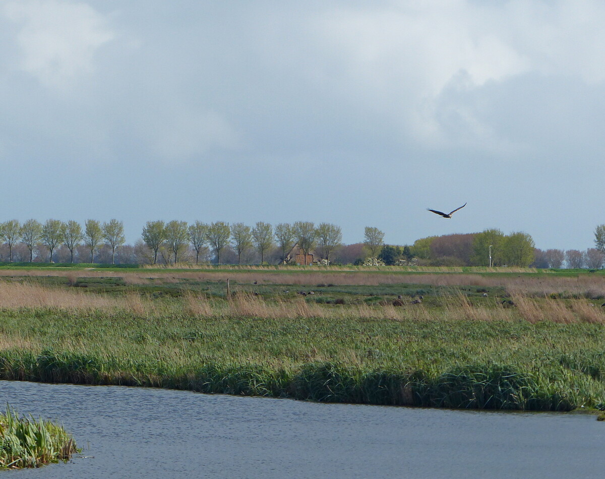 Het is de bruine kiekendief, dat is een hele grote.