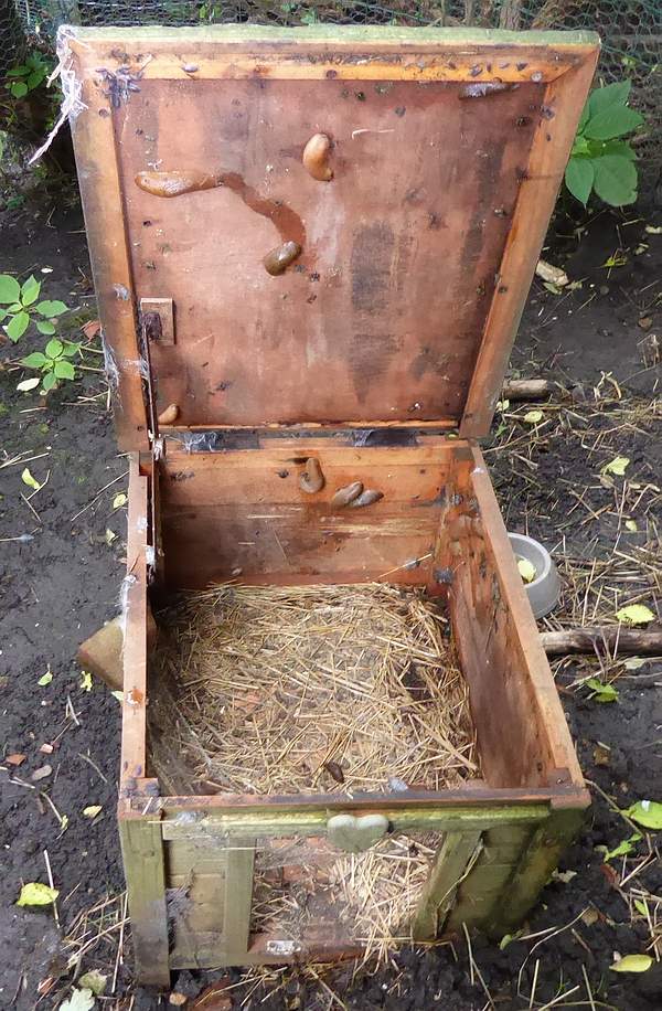 Mijn huidige kippen eten hoogstens érg kleine slakjes.