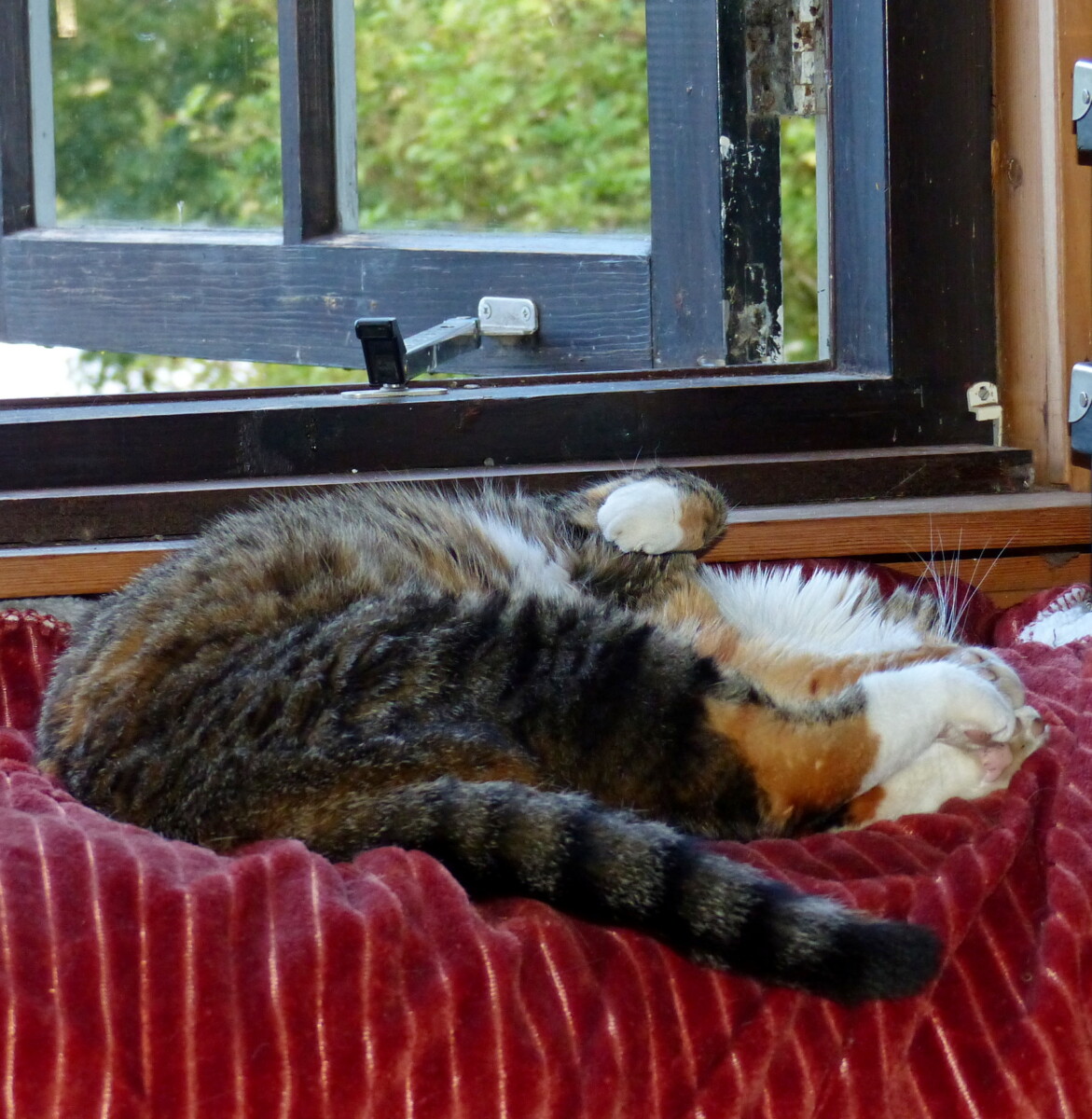 En nu op haar favoriete plekje bij het raam in de slaapkamer.